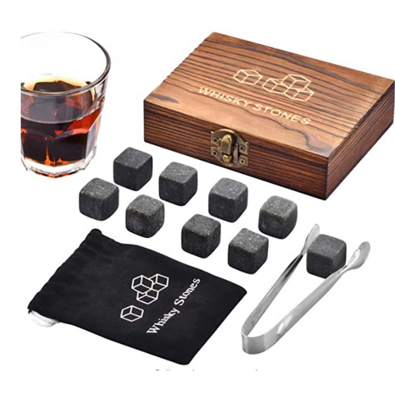 Whiskey 9 pcs Stones Wood Box Gift Set